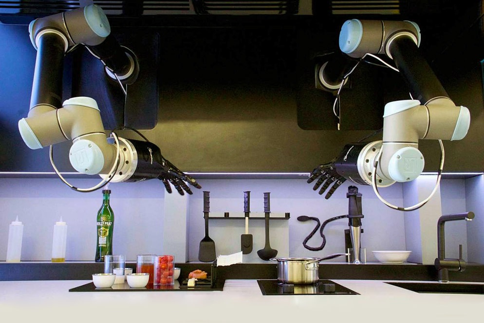 Представляет собой робот два манипулятора, установлены которые над рабочей широкой поверхностью с плитой, раковиной и конфорками. Достаточную ловкость данным манипуляторам обеспечить смогла фирма из Лондона Shadow Robotics. Данная фирма также участвует в различных робототехнических проектах от НАСА. Находится в каждой роборуке по 20 моторов, 129 датчиков и 24 шарнира. Данной системой имитируются движения рук живого повара, которые были записаны на камеру. |