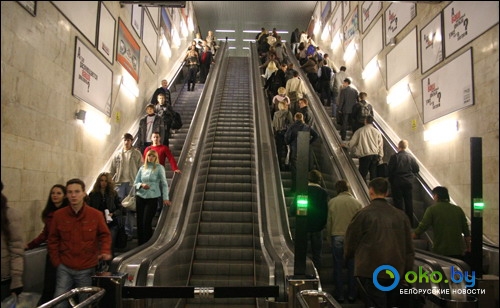 На первый взгляд, на "Октябрьской" ничего не изменилось - те же стены (и те же надписи, кое-где выцарапанные на перилах тоннеля-перехода), те же экраны, которые, перекрикивая друг друга, знакомят пассажиров с новинками белорусской эстрады и рынка товаров и услуг. Лишь эскалаторы со стороны выхода к магазину «Столичный» и к ГУМу новые - в четыре ряда. |
