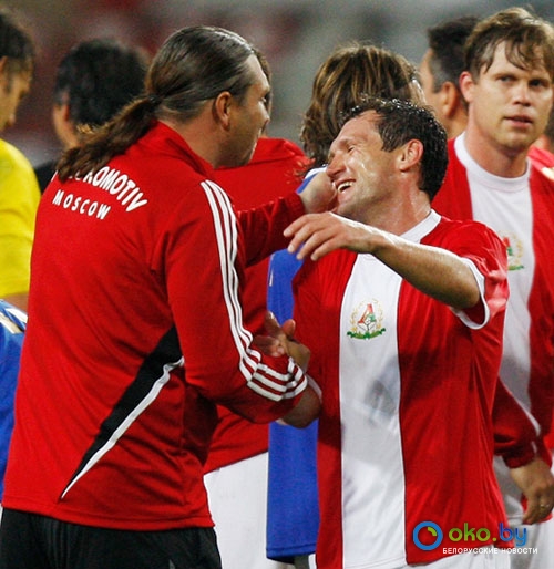 Локомотив (Москва) — сборная России 90-х — 4:3 (Джанашия, 11, 51, Саркисян, 54, Харлачев, 67 — Титов, 8, 19, Аленичев, 28-пен.) Локомотив: Овчинников (Хапов, 8), Гуренко, Чугайнов (Черевченко, 20;. Чугайнов, 46; Оганесян, 61), Пашинин, Горлукович (Лаврик, 8), Косолапов (Батуренко, 34; Косолапов, 41; Харлачев, 48; Соломатин, 71), Лоськов, Дроздов, Маминов, Елышев (Саркисян, 15), Джанашия (Гарин, 52; Веселов, 63; Елышев, 68; Арифуллин, 89; Фузайлов, 90+2). Главный тренер — Юрий Семин. Сборная России 90-х: Дасаев (Корнюхин, 15), Точилин (Гришин, 41), Ананко, Цвейба (Д.Кузнецов, 41), Ковтун (Тихонов, 56), Карпин (Канчельскис, 41), Аленичев (Симутенков, 41), Титов, Радимов (Веретенников, 41), Тихонов (Есипов, 41), Бесчастных (Панов, 41). Главный тренер — Олег Романцев. Среди железнодорожников нашлись и уроженцы Беларуси: защитник Сергей Горлукович, которого на 8-й минуте заменил Андрей Лаврик, родом из деревни Боруны, находящейся на Гродненщине. А также Воспитанник могилевской СДЮШОР Горлукович с 1980 по 1986 играл в составе «Торпедо» (Могилев), «Гомсельмаш» и минское «Динамо». В 1988 году он стал олимпийским чемпионом Сеула в составе сборной СССР, а после распада Советского Союза принял решение выступать за национальную команду России. Матч, проходивший на арене «Локомотива» в Черкизове, посетило 8 тысяч зрителей, что считается довольно солидной аудиторией для встреч подобного рода. И они не пожалели. Матч был зрелищем что надо: игроки «Локомотива» вышли на поле в ретро-форме 1936 года — в красных футболках с белой продольной полосой. — Я в последнее время сильно соскучился по «Локомотиву», очень рад оказаться в Москве, увидеть многих старых знакомых, — отметил в своем интервью после матча Сергей Гуренко. — Здорово и приятно, что последний матч нашего поколения состоялся, хочется поблагодарить руководство клуба и команду соперников. Со сборной России играть было непросто, и мы получили большое удовольствие от открытого принципиального матча, мужской борьбы. Думаю, что и собравшиеся зрители оценили встречу положительно. Ведь футбол существует не только ради очков и результатов, но и ради человеческих отношений, не стоит об этом забывать. Нашей команде не хотелось проигрывать, при счете 1:3 мы все подзавелись, собрались. И победили. |