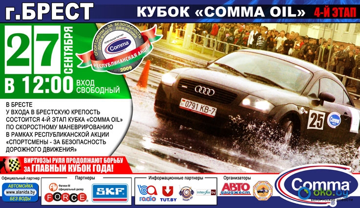 После трех этапов в абсолютном зачете продолжает лидировать минчанин Андрей Барановский, выступающий на автомобиле Mini Cooper S. Но в спину ему дышат Дмитрий Баркан и Константин Бардиан, у коорых тоже еще есть шансы. Следует отметить, что многие из мастеров скоростного маневрирования способны попортить крови лидерам. Их реальными конкурентами вполне могут стать Игорь Чечеткин, Андрей Гринкевич, Сергей Артеменко или Алексей Королев. Этап в Бресте будет заключительным в борьбе за Кубок «Comma Oil» и это, безусловно, отразится на тактике ведения борьбы в заездах лидеров. Трасса в этот раз станет еще более зрелищной и потребует от спортсменов высокой степени концентрации сил и внимания. От этого выиграют только зрители. Кстати, зрители тоже не останутся в накладе: призы от генерального партнера – английских моторных масел Comma, уже приготовлены и ждут своих обладателей. Особенно довольны ими останутся дети, пришедшие на соревнования вместе с родителями. |