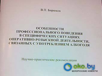 Автором пособия стал генерал-майор милиции, начальник Крымского юридического института Василий Бирюков. В книге автор дает советы, как оставаться в сознании при застолье, как не сболтнуть лишнего, быстро трезветь и лечить похмелье. «Водка, когда ее пьют, ума не добавляет и не забирает, она проверяет, есть ли он», — рассуждает автор. Опохмеляться он рекомендует напитками, которые были «вкушены накануне». «Алкогольный глоссарий» Василия Бирюкова содержит толкование значений таких слов как «бухать». Это, говорит автор, означает «употреблять алкоголь в больших количествах, как правило, в течение продолжительного времени. Пример: вожатая бухала всю смену», — написано в глоссарии. Книга под названием «Особенности профессионального поведения в специфических ситуациях оперативно-розыскной деятельности, связанной с употреблением алкоголя», выпущена ограниченным тиражом. |