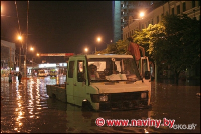 Потоп на НемигеТолько кое-кто на джипах осторожно преодолевал водные преграды. Решив, что маленький грузовичок похож на джип, его водитель вместе с машиной застрял посреди разлива.