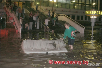 Примерно к 23 часам уровень воды начал спадать, и еще через полчаса только грязь на асфальте напоминала о недавнем кратковременном потопе. |